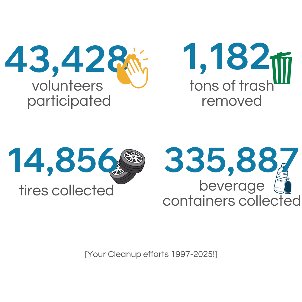 We are now compiling all of your photos, stories, and trash data and will share out the news in our 2025 Cleanup Chronicle, coming later this year (online and to mailboxes).