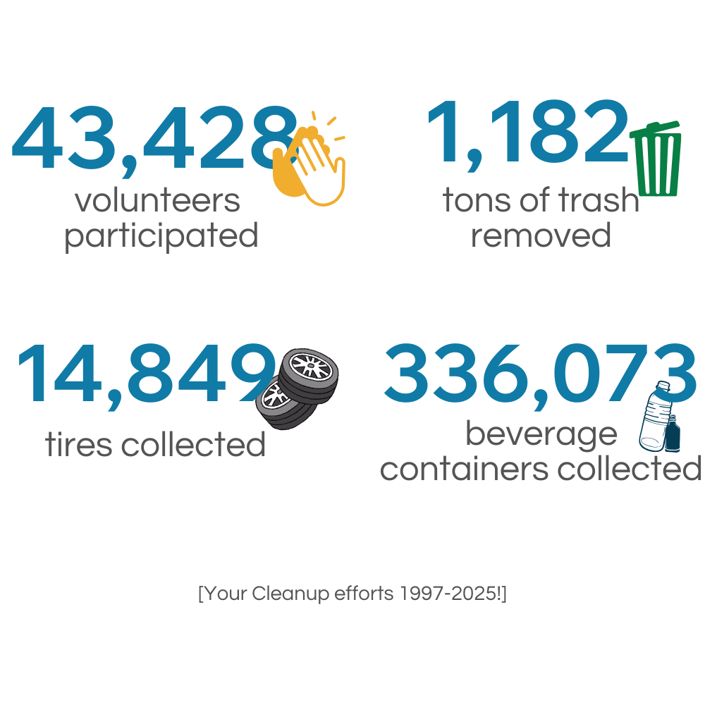Join us to remove trash from our waterways, riverbanks, and communities across